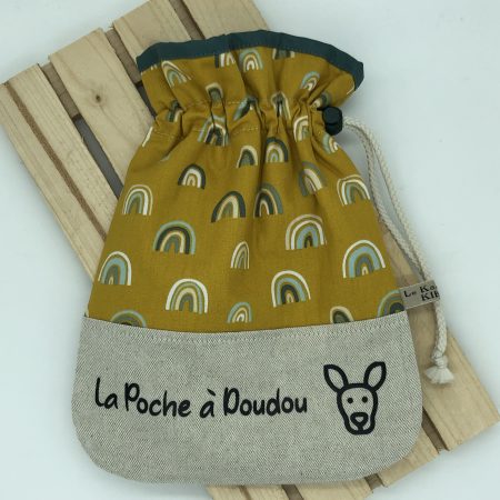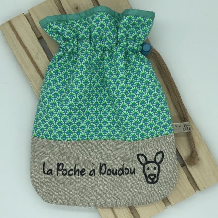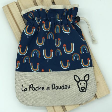 La poche à doudou est un petit sac qui sera parfait pour ranger et transporter le doudou de bébé et petits jouets. Il  pourra également servir pour y mettre le goûter car il est doublé avec un tissu en coton enduit pour un nettoyage facile.