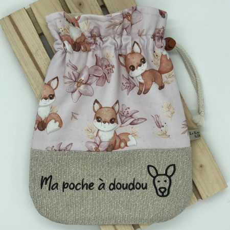 La poche à doudou est un petit sac qui sera parfait pour ranger et transporter le doudou de bébé et petits jouets. Il  pourra également servir pour y mettre le goûter , il est doublé avec un tissu coton