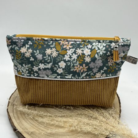 Trousse à Maquillage « Fleuri Vert argent Moutarde »